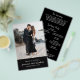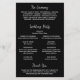 Modern bröllopsprogram (som skrivs ut på tunn skrivare papper) med en minimal design med ditt favoritfoto över en svart bakgrund. Baksidan har din ceremoni, bröllopsfest och tack i en kombination av enkel sans serif typsnitt och ett elegant-skript. Det här chicen skulle vara underbart för ett bra tema för Halloween bröllop.