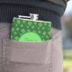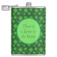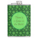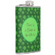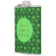 Rolig text och lyckliga gröna fyrklöver på grön bakgrundsflaska. Genie i flaskan text kan anpassas.