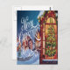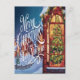Ett festligt julkort med ett fönster som visar en lysande julgran. Kortet är perfekt för att sprida julglädje och goda önskningar.