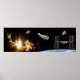Panoramisk poster visningarna högdagrarna i Shuttle-programmet, inklusive uppskjutning, Hubble, ISS och MMU
