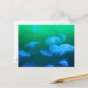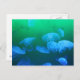 Atmosfärisk fotografi av genomskinlig geléfisk som simmar i blått/grönt hav.