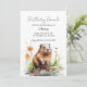 A soft watercolor illustration of a small marmot standing by the water’s edge, surrounded by wildflowers and fresh green grass. With warm brown fur and curious eyes, the scene captures a peaceful moment in nature, evoking calm, innocence, and the quiet beauty of the meadow.