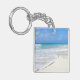 Ät surfa på vit sandstrand. Tropiska öbilder.