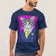 Tee in a dignified gentleman cat, with grönt ögon, in a blue striped kostym, with a gult tie and lapel-blomma