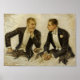 Ett utsökt biet av J. C. Leyendecker av två herrar klädda i tuxedos som sitter i djupa samtal.