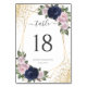 Geo Navy Blue Gold Blush Pink Floral Wedding Bordsnummer