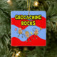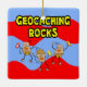 Geocaching Rocks text med tre dansande stenar som håller GPS-mottagare är en rolig geocaching-design för cachers på födelsedagar, helgdagar och geocaching-evenemang.