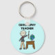 En stick figur geografilärare med en världsomställning på anpassade stick figur Geography Teacher T-shirts, mugg, mousserande, tote bags med mera!