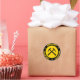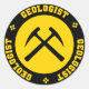 Gult och svart klistermärke med genomkorsade sten hammare omgivna av "GEOLOGIST" i kollegiala stil-bokstäver.
