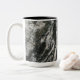 Det delikat fotoet av älskvärd struktur för sten för kattdjurpälsnågot liknande täcker ha som huvudämnedelen av denna mugg. Motsats av handtaget, finns det ett semitransparent lodrätnamnbaner. Banret är svart, och text är den ljusa - gråna för att tända - bruntet.