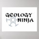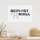 Geology Ninja - vit poster med svarta bokstäver och sten hammer kastar stjärna.