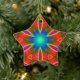 Ett attraktivt geometriskt mönster/mönster i röda, blå, grönt, gult och lila med en sorts blomma som motiv.