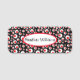 Namn bricka har en geometrisk abstrakt utformning av olika storleka cirklar med röda cirklar inuti vita cirklar på svart bakgrund. Anpassa ditt namn med mallen i den röda, skisserade vita ovalen.