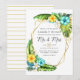 Exotisk bröllopsinbjudan till sommartid på blommigt med rikligt med tropiskt grej i ett gyllene geometriskt ram-anpassade till dina händelsespecifikationer.