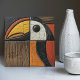 Försätt på en resa genom geometrin och färg med den här fängslande keramiska plattan, där själva kärnan i en tukan fångas upp i en mosaik av former och nyanser. I biet visas en slående kontrast av struktur, från madrassen, texturerad träråda till glanet, glaserad yta i en palett som sträcker sig från grå elfenben till vibrerande nyanser av marigold gult, pumpad orange och terracotta rött. Den smarta arrangemanga av färg och former utgör en avantgardiserad sammansättning som betalar hyllning till den abstrakt konstens anda, perfekt för alla som tittar att förse sitt utrymme med ett inslag av modernt konstnärligt fläkt.