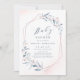Modern gienery babydusch-inbjudan innehöll ren dammig, blå vattenfärg, botanisk bladgrej med faux ro guld foil löv och geometriskt ram, enkelt och elegant. Visa alla matchande delar i samlingen