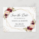 Geometric Burgundy Red-Blommigt Spara datum Vykort