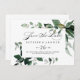 Denna geometriska kalligrafi-grönt vågrät bröllop spara datum är perfekt för ett modernt bröllop. Utformningen har vattenfärgsritad elegant botanisk grönt grenar och löv, som adorerar ett geometriskt ram.