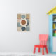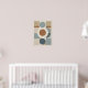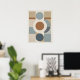 En modern abstrakt poster med vågade geometriska cirklar och former i jordnära toner av terracotta, beige och blue. Denna contemporary väggkonst ger ett rent, halvsekelinspirerat stil som förbättrar vardagsrum, rum eller kontorsutrymmen med minimalistisk elegans.