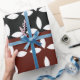 Färgfull Rand Geometric Blommönster Wrapping Papper. Svart rödbrunt vågrät rand med vitt geometriskt blommönster.