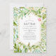 Trendigets gröna baptism inbjudan med guld-geometriska ram och -gröntens vattenfärg tvättar omvänd designad för att snabbt och enkelt anpassas till dina händelsespecifikationer.
