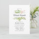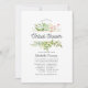Trendiget avstånd länge virtuella baby eller inbjudningskort för möhippan med guld-geometriska ram och gröntens vattenfärg tvättar bakåt.