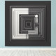 A bold geometric artwork composed of layered squares and a contrasting circular element. The precise white lines on deep black create a sense of depth and structure, making this piece a powerful modern statement within the Filigran in Black Collection.