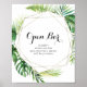 Det här geometriska destinationsbröllopstecknet pub är perfekt för ett tropiskt bröllop. Konstruktionen har handmålad vattenfärg grönt handflatan och banan löv som är väl placerad i vackra buketter och som fäster ett guld geometriskt ram.