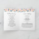 Dessa bröllopsprogram har en vattenfärgsdesign med blåblommor och blommor i rosan, eukalyptus blad och ett faux guld-geometriskt ram. Anpassa dem med texten. Matchande produkter är tillgängliga.