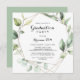 Denna inbjudan till den geometriska eleganten guld grönt studentfest är perfekt för ett modernt firande. Konstruktionen har handmålade botaniska gröntar av eukalyptus löv, som adorerar ett guld-geometriskt ram.