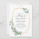 Forest Eucalyptus grönenery bröllopsinbjudan med guld-geometriskt ram och elegant handskriftstypografi anpassade till dina händelsespecifikationer.