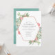 Vatercolor holly jolly christmas-bröllopsinbjudan med ett ro-guld-geometriskt ram, eucalyptus, mistletoe och gräs, kompletterat med en myntfärgad färgad som tvättar omvänt.