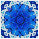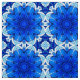Struktur i en geometrisk blomma mönster i djup koboltblå och marin/indigo, på vit accin med turkos