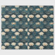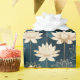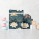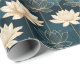 Zen-inspired geometric lotus flowers in shimmering gold and crisp white against deep teal. This symmetrical contemporary floral evokes calm serenity with a modern luxurious edge.