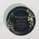 Den här geometriska kallelsen av den blå grönten baby är perfekt för en modern babydusch. Utformningen har handmålad vacker grönt som lämnar i mörk blått bakgrund och lägger till ett guld geometriskt ram.