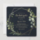 Den här geometriska guld blå grönten-bachelorettpartiets inbjudan är perfekt för en enkel bachelorette firande. Utformningen har handmålad vacker grönt som lämnar i mörk blått bakgrund och lägger till ett guld geometriskt ram.