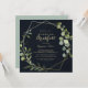 Denna geometriska frukost i guld blå grönt i bröllop är perfekt en enkel dag efter att familjen och vänner i bröllop kom samman frukost. Utformningen har handmålad vacker grönt som lämnar i mörk blått bakgrund och lägger till ett guld geometriskt ram.