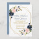 Modern Elegant Watercolor Dusty Blue and Rosa Blommigt, Guld Geometric Ram Wedding bjudande in