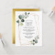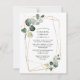 Elegantens geometriska guld ram-vattenfärg eukalyptus botaniska grönsken från guld skapar denna enkla chic i inbjudningskort för möhippan och vacker som din gäst får från kärlek. På inbjudningens baksida är Faux guld fast.