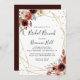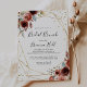 Denna geometriska brunch inbjudningskort för möhippan i möhippan guld är perfekt för en enkel möhippa. Utformningen har Rosa, , röda, blå och burgudfärgade, handmålade, vackra blommor i kombination med grönt bladverk, som adorerar en geometrisk guld glitter ram.
