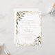 Den här geometriska guld-gieneri-invigningen är perfekt för ett rustiskt bröllop. Utformningen har ett vackert guld-geometriskt ram med elegant grönt löv. Spara papper genom att på baksidan av inbjudan ange mer information i stället för på ett separat visitkort.