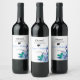 Geometric Guld Ram blå blommigten Bröllop Vin Vinflaska Etikett