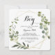 Den här geometriska guld-tropiska, det är en pojkbabyduschinbjudan är perfekt för en enkel babydusch eller sprinkle. Utformningen har handmålade vackra löv för grönt, som lägger till ett guld-geometriskt ram.