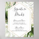 Den här geometriska dryckesskylten för tropiska namnteckning i guld är perfekt för ett destinationsbröllop. Utformningen har handmålad vattenfärg guld och grönt handflatan och banan löv med rosa blommor som buntas till buketter, med tillägg av ett geometriskt ram. Anpassa tecknet med namn på bruden och trippen och deras favoritdryckval.
