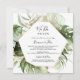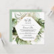 Denna geometriska tropiska guld, som vi gör igen genom förnyelseinbjudan, är perfekt för en förnyelse av destinationsvow. Utformningen har handmålad vattenfärg guld och grönt handflatan och banan löv med rosa blommor som buntas till buketter, med tillägg av ett geometriskt ram.