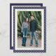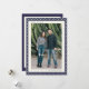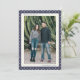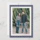 Denna moderna Hanukkah-design har ett marinblått geometriskt gräns som inspirerats av mönster i mitten av århundradet. Framsidan visar ett stort foto med skarp elfenben och ren typografi. På baksidan finns utrymme för ytterligare ett helgdag för foto och anpassningsbar.