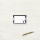 Fäster anteckningar med ett svart hjort med geometrisk linje och med rosa blommigt krona. Rustik och trendig design. Bakgrunden är ett mönster med svart och vitt rand och ett vitt ram överst.