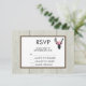 Bröllop eller annan OSA kort med svart hjort med geometrisk linje och med rosa blommigt krona. Rustik och trendig design. Bakgrunden är en digital bild av ett struktur av trä med ett vitt ram med brunt gräns överst.