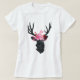 En t-shirt med svart hjort med geometrisk linje och med rosa blommigt krona. Rustik och trendig design.