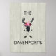 En poster personlig med din familj namn eller annan text med ett svart hjort tillverkat med geometriskt linjer och med rosa blommigt krona. Rustik och trendig design. Bakgrunden är en digital bild av mjuka beige färgader av träplåtar.